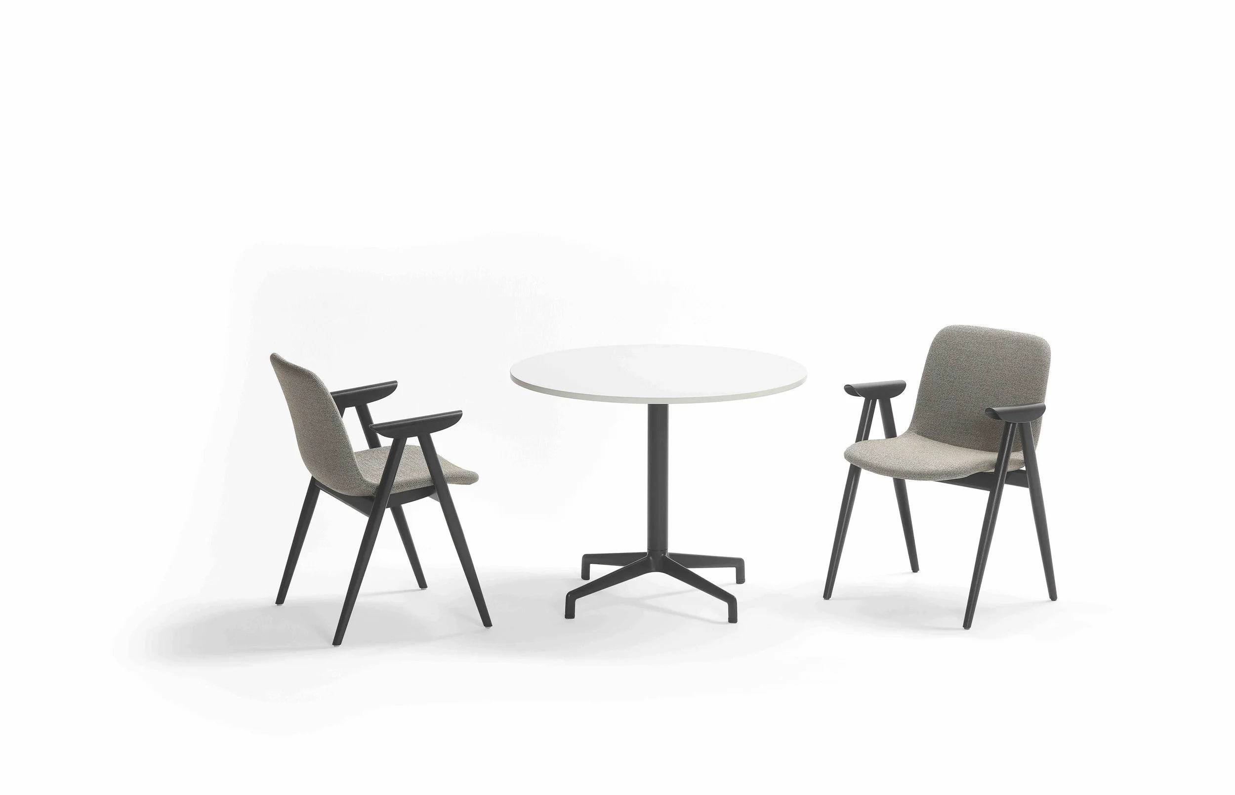 Hout brings the soft warmth of wood to the modern workplace. The uniquely curved armrests, constructed in FSC® certified wood, echo the curvature of the seat to bring both visual harmony and physical comfort. Available as a lounge chair and side chair, Hout was designed with sustainability in mind, minimizing the use of materials while achieving maximum impact.